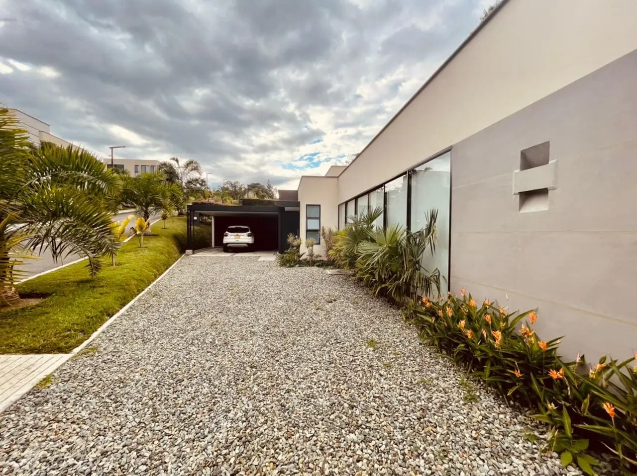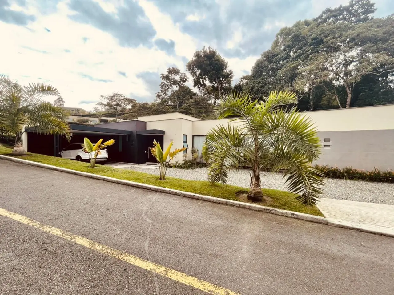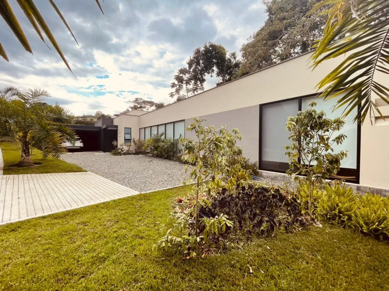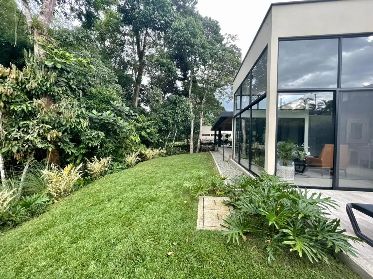 Casa moderna de dos niveles con ventanales que integran el paisaje. Sus espacios verdes son el escenario perfecto para tus domingos en familia.
