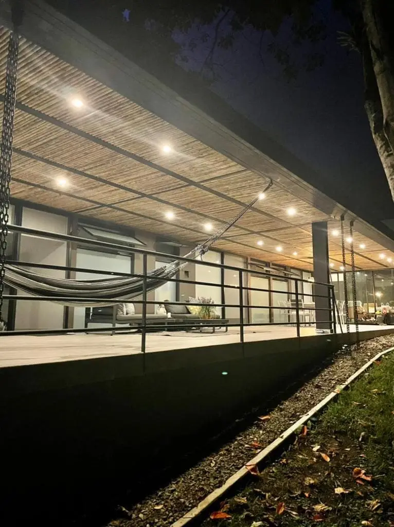 Casa moderna de dos niveles con ventanales que integran el paisaje. Sus espacios verdes son el escenario perfecto para tus domingos en familia.